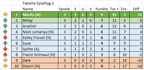 Und hier die Tabelle nach dem dritten Spieltag